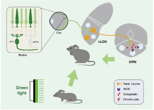 تستجيب بعض البروتينات الضوئية الوراثية (مثل طفرات ChR2) للضوء الأخضر. يمكن زرع الليزر المقترن بالألياف أو توجيهه إلى أنسجة الدماغ لتحفيز الخلايا العصبية.